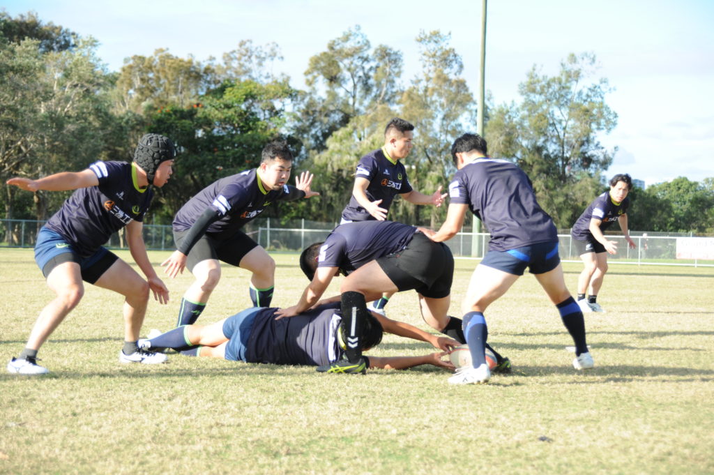 その後には、試合会場で練習を行いました。猛暑である日本は現在、夏ですが、南半球に位置するオーストラリアは冬に当たります。ゴールドコーストは1日の平均気温が16度程度と、ラグビーがしやすい気候です。この日も天気は良いものの気温は20度を超えない快適な環境の下、大会当日に向けて最終確認・練習ができました。